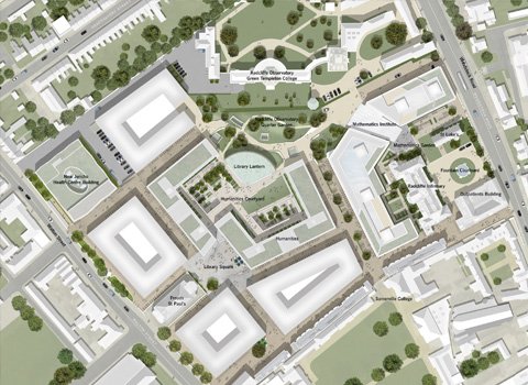 The firm has worked closely over several years with various design teams appointed on individual buildings, and coordinated the preparation and negotiations of a number of planning applications for various aspects of the site. The development will include major new facilities for Mathematics and Humanities, administrative facilities for the University, alongside student accommodation for Somerville College, facilities for the Ruskin School of Art and a new Health Centre for the local residential area of Jericho.